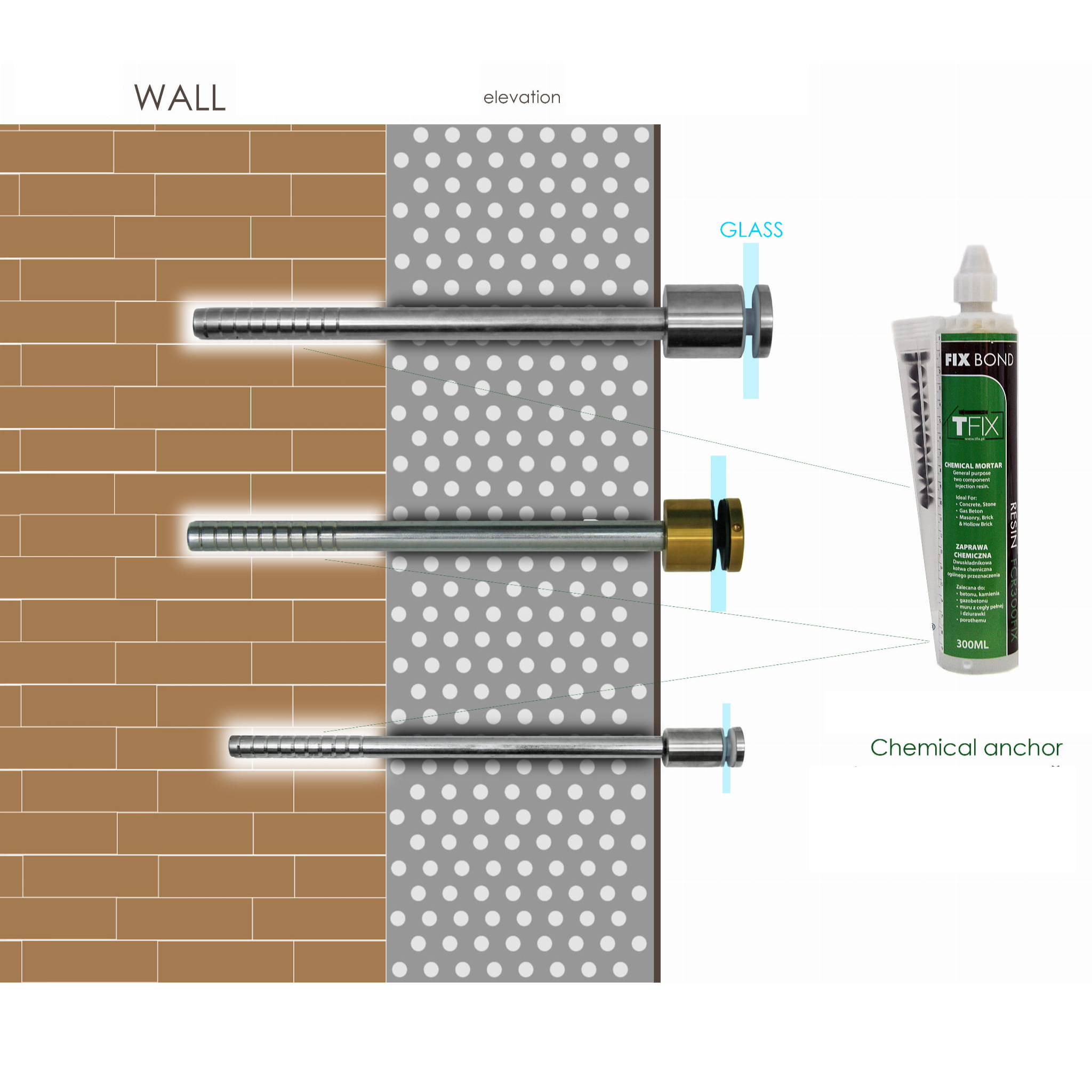 | M | Diameter ø | Glass thickness, mm | Spacer h mm | Grade | Finish |