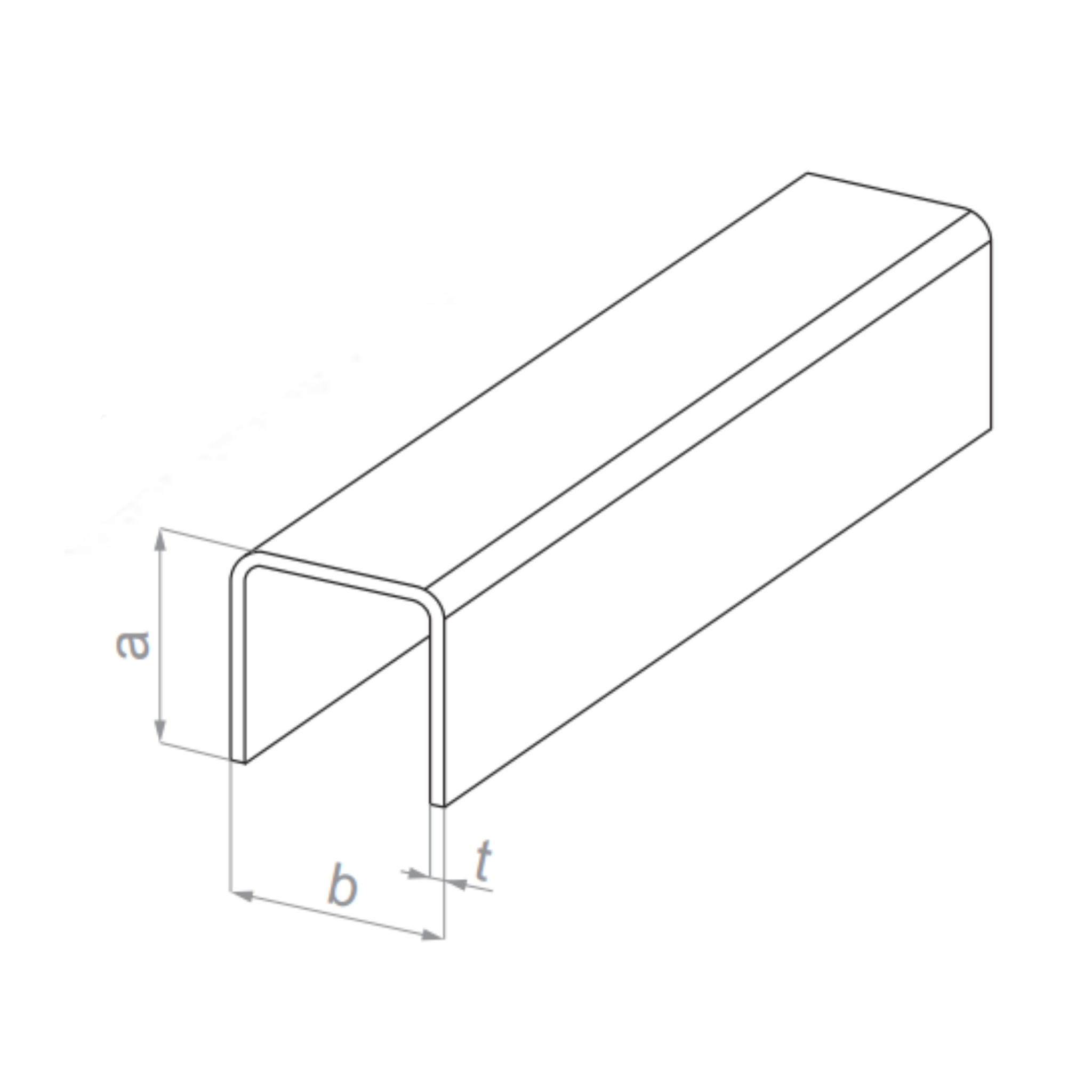 U-profils, sēdināms uz stikla 10.76-17.52mm, L=2500mm, nerūsējošais tērauds, slīpēts, AISI304,